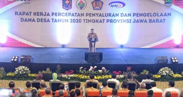 Guna memastikan penyaluran dana desa efektif dan bermanfaat bagi masyarakat pedesaan, Pemerintah Pusat dan Pemerintah Daerah (Pemda) Provinsi Jabar menggelar Rapat Kerja (Raker) Percepatan Penyaluran dan Pengelolaan Dana Desa Tahun 2020 Tingkat Provinsi Jabar di Sentul International Convention Center, Kabupaten Bogor, Senin (2/3/20).