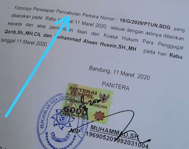 Dikatakan dia, permohonan pencabutan gugatan tersebut juga merupakan bagian dari mekanisme dalam proses hukum yang tengah dilakukannya tersebut. “Jadi setelah pencabutan, kita mendaftar kembali dan minggu depan akan menjali sidang dengan perkara bernomor 34/G/2020/PTUN.BDG,” ucapnya.