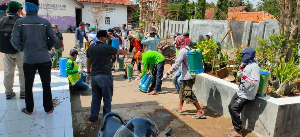 CIREBON – Demi mencegah penularan Virus Corona atau Covid 19, Pemerintah Desa (Pemdes), Paburan Lor, Kec Pabuaran, Kab Cirebon bersama dengan unsur kelembaga Desa, seperti Lembaga Pemberdayaan Masyarakat Desa (LPMD), Badan Permusyawaratan Desa. (BPD), Karang Taruna, kelompok tani, relawan dan warga setempat, kompak dan serentak melakukan penyemprotan disinfektan, pada Sabtu (28/3/2020) dan Minggu (29/3/2020).