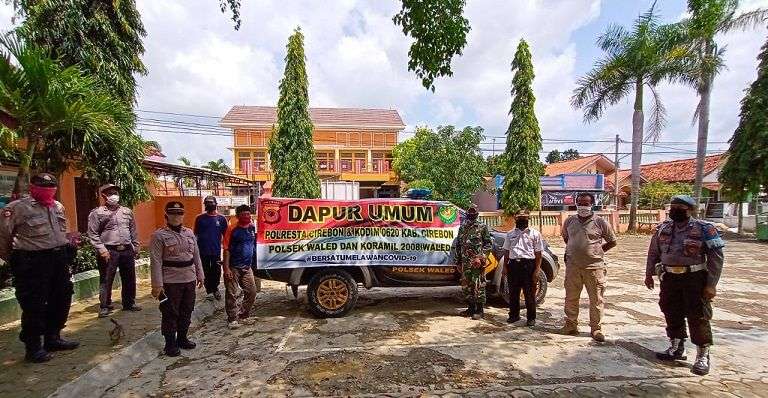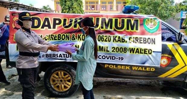 CIREBON – Bantu masyarakat terdampak corona di wilayah Waled, Kabupaten Cirebon, Polresta Cirebon beserta Kodim 0620/Kab Cirebon, gelar dapur umum, di Desa Gunungsari Kecamatan Waled Kabupaten Cirebon, Rabu (22/4/2020). Dalam giat tersebut, sebanyak 200 nasi kotak dibagikan kepada warga.