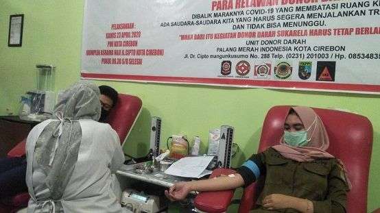CIREBON – Tim Elang 063/SGJ dan Yayasan Bina Insan Al Khoiraat bekerja sama dengan Satpol PP Kab. Cirebon, organisasi kewartawanan serta beberapa Ormas/LSM, gelar donor darah, Kamis (23/4/2020). Aksi dilakukan di UPTD PMI Kota Cirebon.