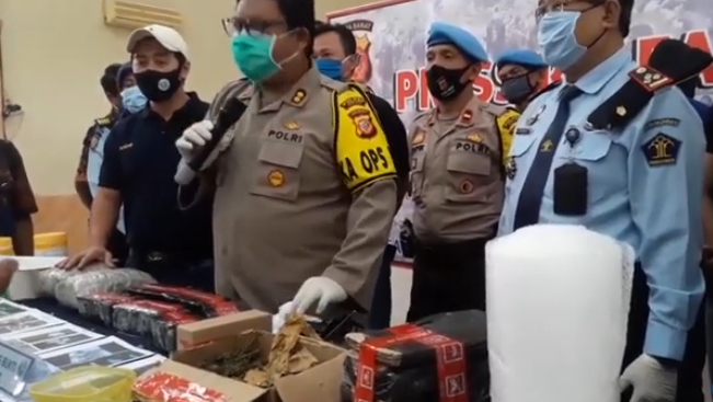 “Kita berhasil mengungkap kasus narkoba, jenis ganja, yang melibatkan anak di bawah umur. Tersangkanya ND (14) sebagai bandar dan Ros Wildan Wilaga (19) sebagai kurir. Barang bukti 1 unit motor Suzuki Satria, 6 paket ganja siap kirim via J&T, 4 bungkus ganja siap edar, 2 unit timbangan, peralatan packing dan 2 unit handphone,” ujar Kapolres Kapolres Cimahi AKBP M Yoris Marzuki, saat menggelar ekspose kasus tersebut di Gedung Pengabdian Polres Cimahi, Selasa (12/5/2020).