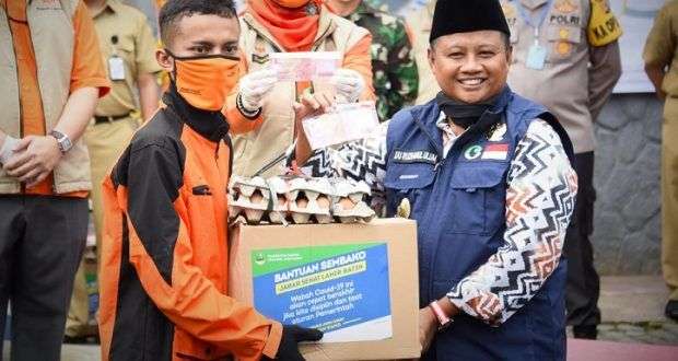 GARUT – Wakil Gubernur Jawa Barat (Jabar) Uu Ruzhanul Ulum melepas distribusi bantuan sosial (bansos) Provinsi Jabar untuk masyarakat Kabupaten Garut di Kantor Pos Garut, Selasa (12/5/20).
