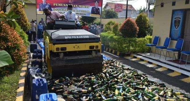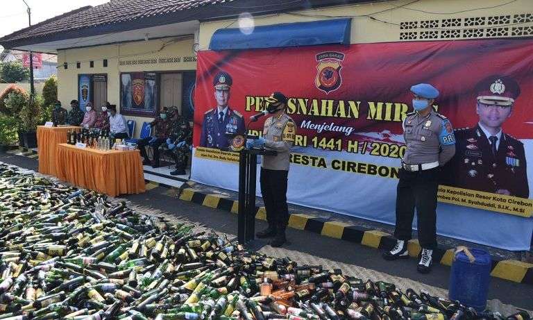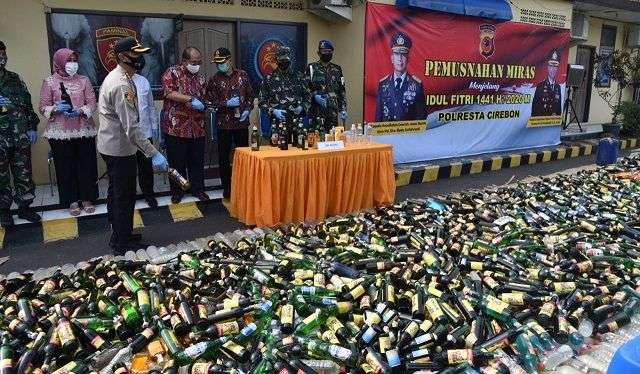 “Miras yang kami musnahkan sebanyak 10019 botol miras pabrikan dari berbagai jenis dan merek, 1.450 liter miras jenis ciu, dan 1250 liter miras jenis tuak,” ujar Kapolresta Cirebon, Kombes Pol. M. Syahduddi, usai pemusnahan kepada para wartawan.