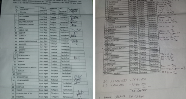 Lanjutnya, “Pada saat menerima uangnya silahkan ditanyakan apakah menerima utuh honor tersebut atau ada pungutan seperti yang disampaikan diatas,” Eji menegaskan.