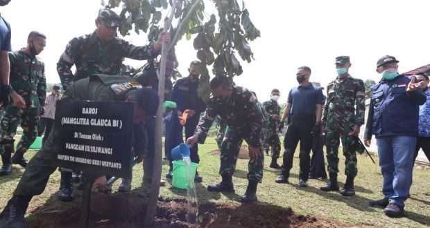 Kegiatan dilanjutkan dengan penanaman pohon. Pangdam III/Siliwangi dan Wali Kota Cimahi menanam jenis pohon Baros (Manglitea Glauca Bi) dan selanjutnya diikuti pula oleh para Dansektor dan tamu undangan lainnya. (rls/pendam)