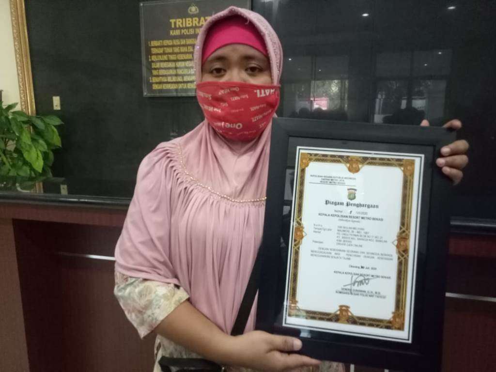 Ibu muda yang berprofesi sebagai pengemudi ojek online itu mendapatkan penghargaan serta rasa kagum dari Kapolres Metro Bekasi, Kombes Pol Hendra Gunawan, saat diundang ke Mapolres Metro Bekasi, Kamis (30/07/2020) kemarin.