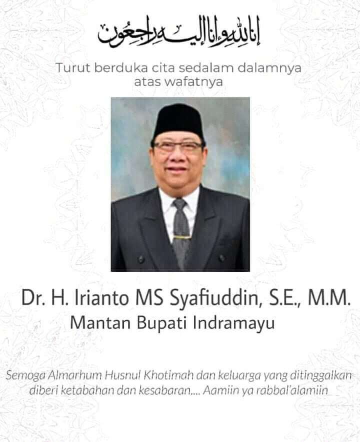 INDRAMAYU – Kabar duka datang dari mantan Bupati Kabupaten Indramayu. Dikabarkan Irianto MS Syafiuddin atau yang akrab disapa Yance meninggal dunia pada Minggu (16/8/2020) pagi.