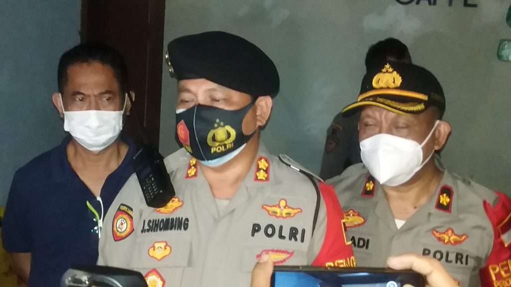 Kasat Shabara Polres Metro Bekasi, AKBP J. Sihombing (tengah), Didampingi Kasat Narkoba (kiri) dan Kapolsek Cikarang Selatan (kanan). (Foto: red)