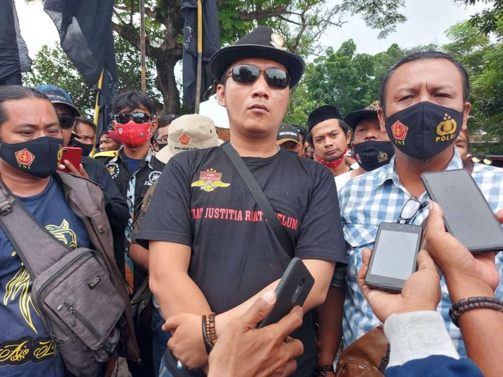 AKSI – Ketua LSM GMBI Cirebon Raya Maman Kurtubi (tengah) bersama Ketua LSM KOMPAK Cirebon Sudarto (kiri) dan Sekjen LSM KOMPAK Cirebon Dedy Chan saat diwawancarai wartawan.