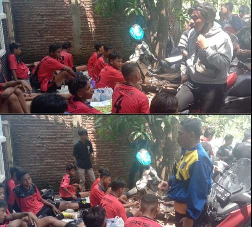 MOTOVASI – Pelatih Jembar Raya Wilmar dan Kuwu Dompyong Wetan Warna, saat memberikan motivasi kepada para pemain usai bertanding.