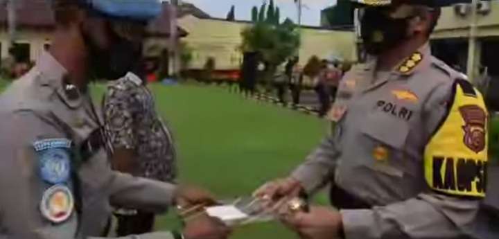CIREBON – Kapolresta Cirebon M. Syahduddi S.Ik M.Si memberikan penghargaan kepada seorang Anggota Polri berprestasi dan masyarakat yang membantu tugas Polri dalam hal ini Polresta Cirebon yang telah membantu pihak kepolisian dalam melaksanakan tugas, dalam giat apel Senin (23/11/2020) pagi pukul 07:30 WIB.