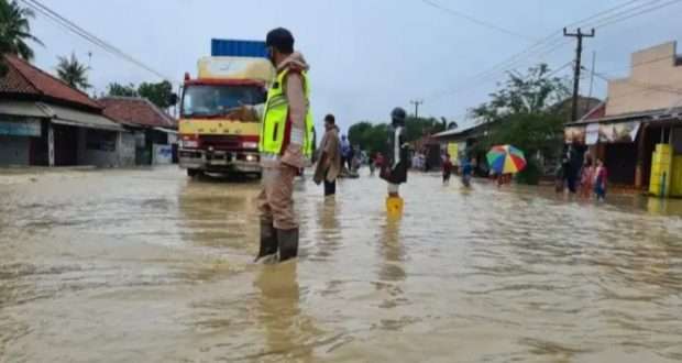 Sementara itu, kondisi yang tak kalah parah ada di jalur utama pantai utara (pantura) yang sampai lumpuh total. Air berasal dari luapan sungai Cipanas merendam jalan dengan ketinggian mencapai 30 sentimeter.
