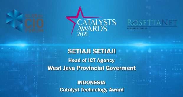 KOTA BANDUNG – Kepala Dinas Komunikasi dan Informatika Provinsi Jawa Barat Setiaji menjadi salah satu pemenang dalam Catalysts Awards 2021 yang diadakan Global CIO Forum dan RossetaNet Singapore GS1.