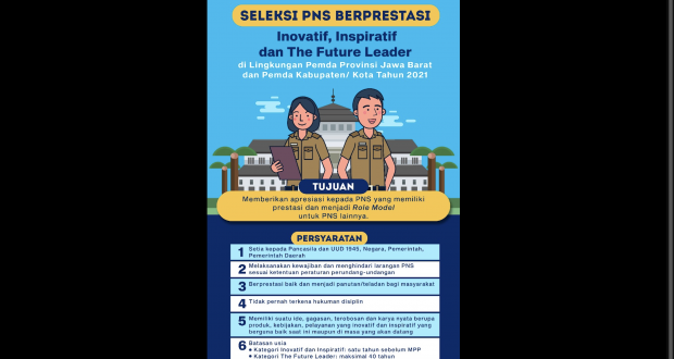 KOTA BANDUNG – Pemerintah Daerah (Pemda) Provinsi Jawa Barat (Jabar) terus berupaya mencetak Pegawai Negeri Sipil (PNS) berkualitas untuk meningkatkan pelayanan publik dan daya saing, serta menopang pembangunan daerah. Oleh karena itu, Pemda Provinsi Jabar menggagas seleksi PNS berprestasi inovatif, inspiratif, dan the future leader.