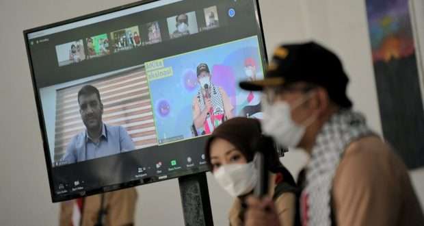 Bantuan berasal dari donasi masyarakat dan berbagai elemen Jabar. Bantuan diterima simbolis oleh Wakil Menteri Kesehatan Palestina Yousef Abu al Rish yang tersambung secara virtual dari Gaza, Senin (14/6/2021).