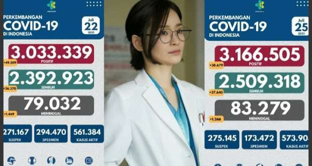 Hingga akhir Juli 2021 ini ini belum menunjukkan tanda-tanda penurunan angka yang signifikan. Terakhir, Minggu tanggal 25 Juli 2021, jumlah kasus positif bertambah sebanyak 38 ribu lebih adapun jumlah kematian akibat corona ini mencapai 1200 orang lebih.
