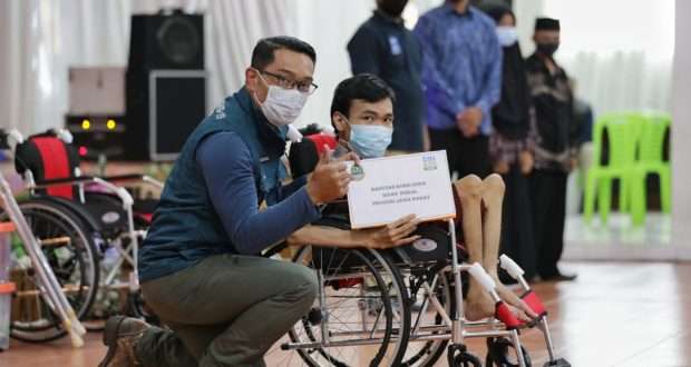 Selain itu, sebagai bentuk keadilan sosial, Dinas Sosial Jabar juga menyerahkan bantuan kursi roda dan kruk tongkat kepada sejumlah penyandang disabilitas.