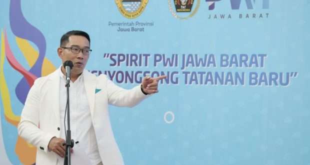 “Saya menitipkan PWI harus juara. Juara dalam beradaptasi. Juara dalam membimbing masyarakat Jabar beradaptasi dalam tatanan baru, tatanan post COVID-19, tatanan 4.0, tatanan betapa masyarakat Jabar membutuhkan informasi-informasi yang bertanggung jawab,” kata Kang Emil.
