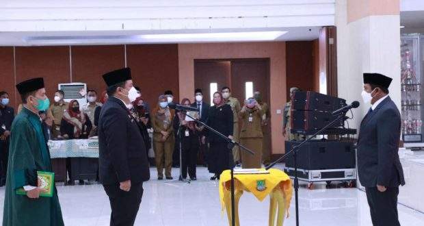 BEKASI – Plt Bupati Bekasi Akhmad Marjuki melantik Drs. Dedy Supriyadi, MM sebagai Pejabat Pimpinan Tinggi Pratama Sekretaris Daerah (Sekda) Kabupaten Bekasi, di Gedung Swatantra Wibawa Mukti, Komplek Pemkab Bekasi, Cikarang Pusat, Senin (31/01/22).