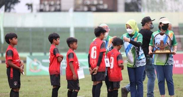 KOTA BANDUNG — Ketua TP-PKK Provinsi Jawa Barat Atalia Praratya Ridwan Kamil menghadiri Penutupan Turnamen Sepak Bola SSB U-10 Piala Ketua Persit Kartika Chandra Kirana Daerah III/Siliwangi se-Jabar di Stadion Siliwangi, Kota Bandung, Minggu (27/3/2022).