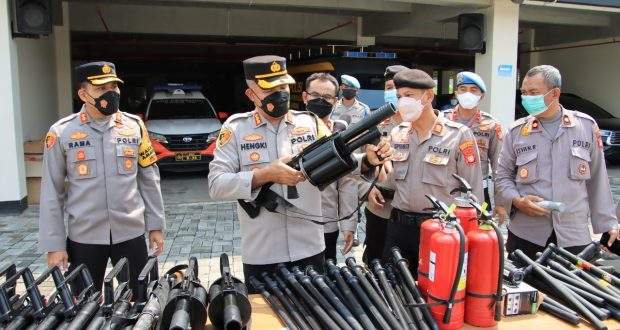 Sementara itu, Kapolres beserta Wakapolres melakukan pemeriksaan dari mulai kendaraan, hingga senjata taktis yang digunakan oleh kesatuan Samapta Polres Metro Bekasi Kota.
