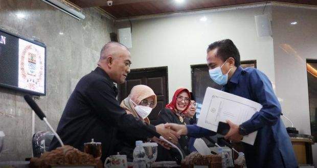 CIREBON – Rapat paripurna DPRD Kota Cirebon mengesahkan dua rancangan peraturan daerah (raperda) menjadi perda, Jumat (27/5/2022), di Griya Sawala gedung DPRD. Wakil Ketua DPRD Kota Cirebon, M Handarujati Kalamullah SSos menyampaikan, agenda rapat paripurna kali ini yaitu pengambilan keputusan terhadap Raperda tentang Pengelolaan Keuangan Daerah dan Raperda tentang Konservasi Sumber Daya Air (SDA). Kedua raperda tersebut kemudian disetujui menjadi perda.