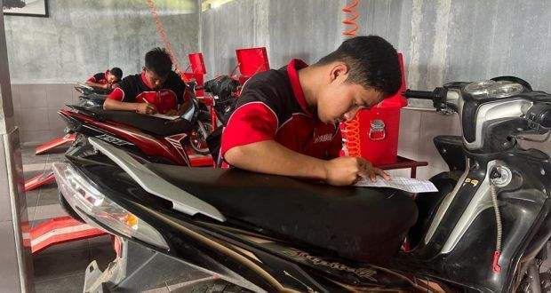 Sedangkan untuk unit sepeda motor yang menjadi obyek upgrading dihadirkan dalam kondisi yang bervariasi, ada yang sudah standar, ada juga yang sengaja dibuat tidak berfungsi untuk diperbaiki. “Sehingga para siswa bisa melaporkannya lewat job sheet (laporan) terkait kondisi dan tindakan yang harus dilakukan,” terang Cecep.