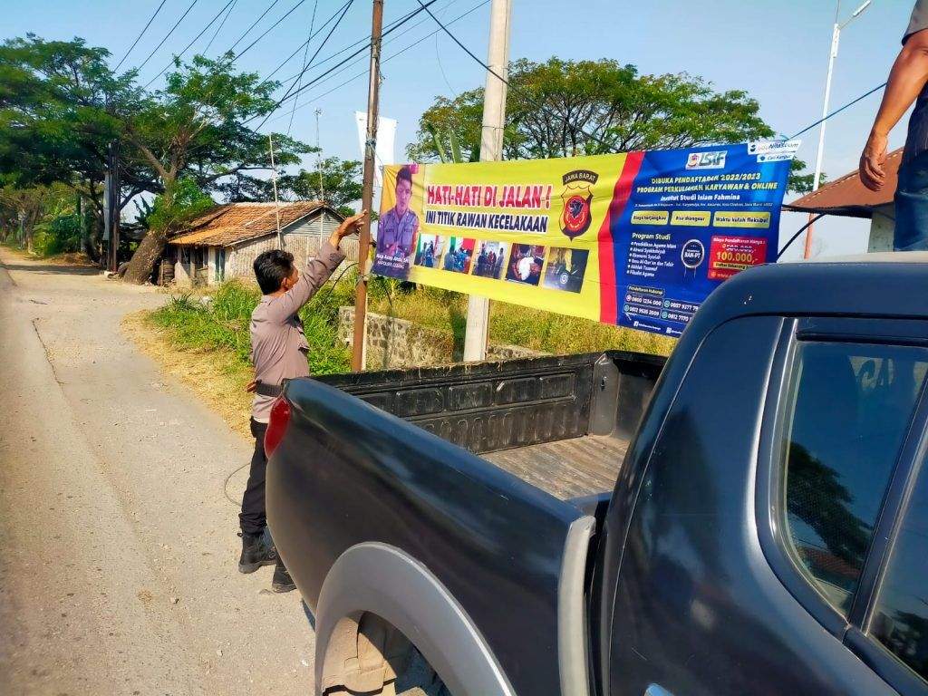 Polsek Gebang Pasang Spanduk Imbauan Rawan Laka, Pengendara Sampaikan Apresiasi