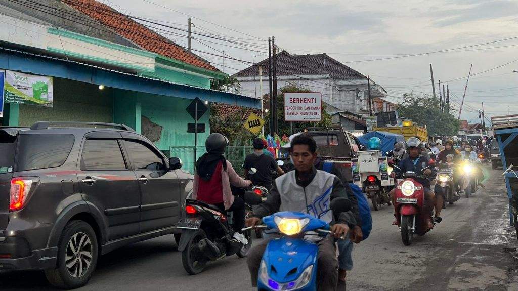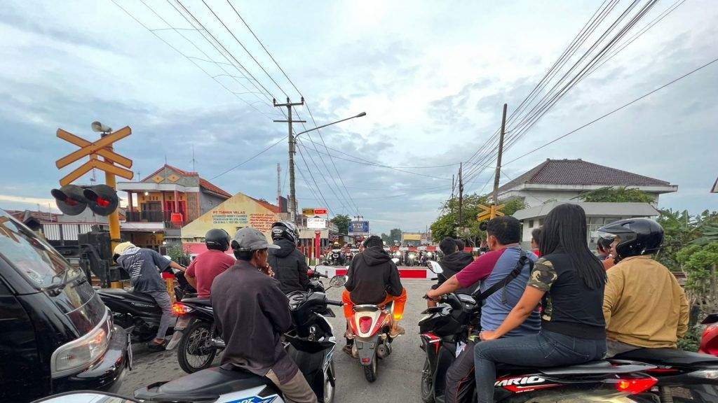 ANTREAN PANJANG KENDARAAN TERJADI SAAT KERETA API MELINTAS