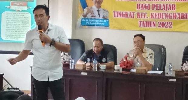 BEKASI – Dalam rangka upaya mengurangi angka penyalahgunaan narkoba di kalangan pelajar dan pemuda, Kanit Reskrim Polsek Kedungwaringin memberikan penyuluhan dan sosialisasi yang bertempat di aula kantor Kecamatan Kedungwaringin, Kampung Kedung Gede, Kecamatan Kedungwaringin, Kamis (27/10/2022) pagi.