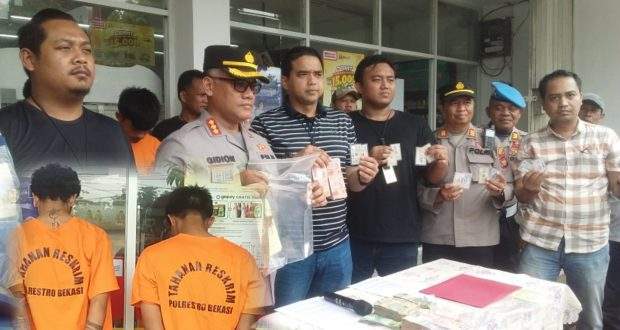 Dua orang pemuda diringkus petugas Polres Metro Bekasi karena diduga kuat sebagai pelaku perampokan minimarket tersebut.