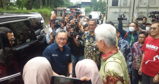 BEKASI – Menteri Perdagangan (Mendag) RI, Zulkifli Hasan melepas ekspor perdana produk Usaha Mikro, Kecil dan Menengah (UMKM) berupa 22 produk makanan olahan merek Helda’s Snack yang diproduksi PT Safeline Indonesia untuk ke Jeddah, Arab Saudi, di PT Pos Logistik Indonesia Jalan Diponegoro No. 108, Kelurahan Jatimulya, Kecamatan Tambun Selatan, Kabupaten Bekasi, Jumat (10/02/2023) siang.