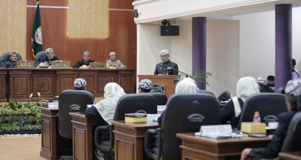 KABUPATEN CIAMIS – Gubernur Jawa Barat Ridwan Kamil menghadiri Rapat Paripurna Istimewa dalam rangka Hari Jadi ke-381 Kabupaten Ciamis di Aula DPRD Kabupaten Ciamis, Senin (12/6/2023).