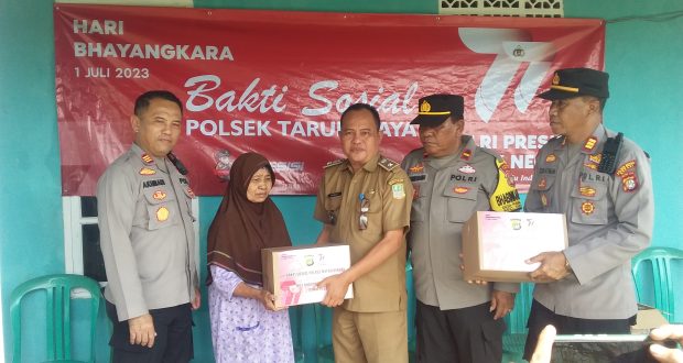 BEKASI – Dalam rangka menyambut HUT Bhayangkara Ke 77 Tahun 2023, Polsek Tarumajaya Polres Metro Bekasi berserta anggota dan Kepala Desa Samuderajaya, salurkan 40 paket sembako kepada warga kurang mampu di Kampung Bojongjaya RT 01/04 Dusun 1 Desa Samuderajaya, Kecamatan Tarumajaya, Kabupaten Bekasi, Selasa (20/06/2023) siang.
