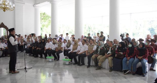 KOTA BANDUNG – Gubernur Ridwan Kamil melepas Tim Pemeriksa Kesehatan Hewan Kurban Provinsi Jawa Barat di Gedung Pakuan, Kota Bandung, Kamis (22/6/2023).