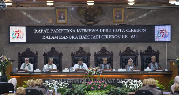KOTA CIREBON – DPRD Kota Cirebon menggelar rapat paripurna istimewa dalam rangka Hari Jadi Cirebon ke-654 di ruang Griya Sawala DPRD Kota Cirebon, Rabu (19/7/2023). Yang istimewa pada paripurna ini adalah hadirnya Gubernur Jawa Barat, H. M. Ridwan Kamil.