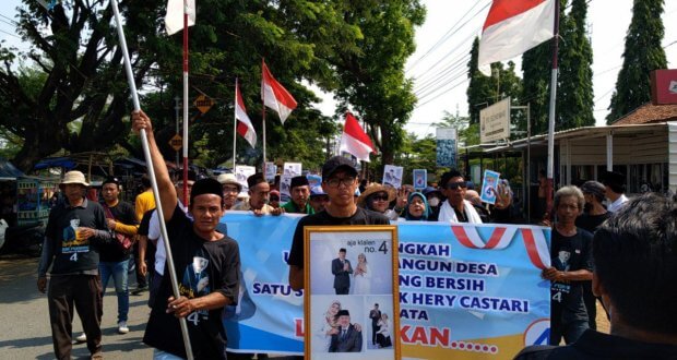 CIREBON – Calon Kuwu Desa Pabuaran Lor nomor urut 4, Hery Castari, sukses menggelar kampanye di hari terakhir putaran kampanye Pemilihan Kuwu (Pilwu) serentak 2023, Selasa (17/10/2023). Kampanye calon kuwu incumbent ini diikuti sekitar seribuan warga, simpatisan dan para relawan. Dengan iring-iringan sholawat, Hery bersama istri tercinta berjalan sesuai rute yang sudah ditentukan. Sedangkan para simpatisan juga tim sukses berkampanye dengan santun guna menarik simpati warga. “Kerja cepat, kerja tepat, pilih nomor 4, Lanjutkan!” ujar salah seorang pendukung dengan pengeras suara diiringi yel-yel serupa dari pendukung lainnya.