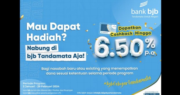 Disampaikan Widi, program promosi “bjb Gebyar Tandamata” ditujukan kepada nasabah perorangan yang bersedia menempatkan dana dalam produk Tabungan dengan nominal dan jangka waktu tertentu.