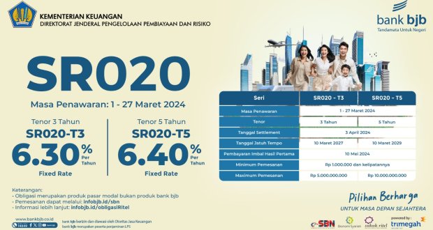 BANDUNG – Pemerintah resmi menerbitkan Sukuk Ritel seri SR020 dengan masa penawaran yang berlangsung pada tanggal 1-27 Maret 2024.