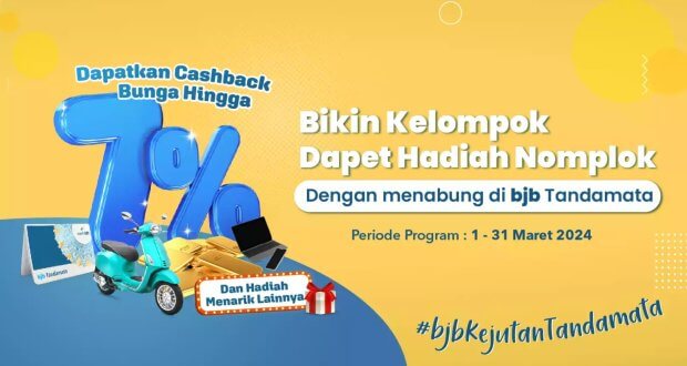 Periode program “Kejutan Tandamata” berlangsung mulai tanggal 1 hingga 31 Maret 2024. Untuk informasi lebih lanjut mengenai program ini, nasabah dapat menghubungi kantor cabang bank bjb terdekat.