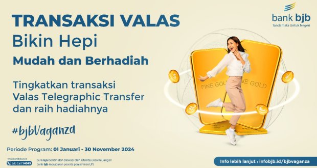 “Program bjb Vaganza Tahun 2024 adalah wujud apresiasi kami kepada nasabah yang aktif dalam melakukan transaksi valuta asing dengan bank bjb,” ujar Widi.