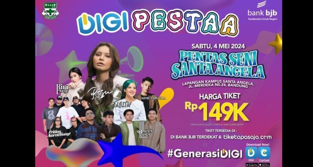 BANDUNG – Kota Bandung bersiap untuk menyambut kehadiran DIGI Pentas Seni Santa Angela (DIGI PESTAA), yang digelar SMA Santa Angela Bandung, dengan dukungan penuh bank bjb. Sebuah event yang akan memadukan seni dan teknologi transaksi digital. Digelar pada hari Sabtu, tanggal 4 Mei 2024, acara ini akan berlangsung di Lapangan Kampus Santa Angela, Jl. Merdeka No. 24, Bandung.