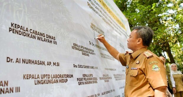 KAB. BANDUNG – Sekretaris Daerah Provinsi Jawa Barat Herman Suryatman menghadiri Pencanangan dan Penguatan Komitmen Pembangunan Zona Integritas Menuju Wilayah Bebas dari Korupsi dan Wilayah Birokrasi Bersih dan Melayani (WBK/WBBM) pada unit kerja di lingkungan Pemda Provinsi Jabar.