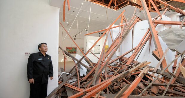 Selanjutnya, Herman menginstruksikan agar Gedung Pusat Kebudayaan dilakukan pengamanan, jangan sampai ada orang yang masuk ke lokasi karena dikhawatirkan terjadi roboh susulan sebab siku-siku atau rangka atap bangunan konstruksinya saling berkait, apalagi masih ditumpangi genteng.