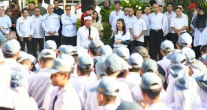 KOTA BANDUNG – Penjabat Gubernur Jawa Barat Bey Machmudin memimpin apel kesiapsiagaan bencana hidrometereologi dan mendukung Pilkada Serentak 2024, di halaman Gedung Sate Bandung, Rabu (30/10/2024).