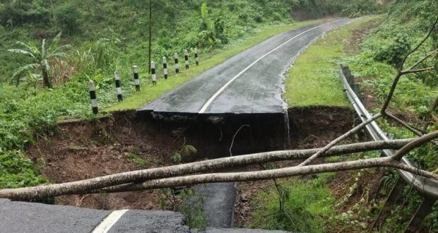 Waluran — Jampang Kulon jalan masih terputus karena amblas dan ruas Bagbagan – Kiaradua sudah tembus untuk dilalui, tetapi masih ada potensi longsoran dan masih banyak sisa material tanah di badan jalan.