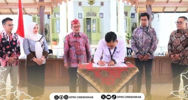 CIREBON – Ketua DPRD Kabupaten Cirebon, Sophi Zulfia, menghadiri penandatanganan Memorandum of Understanding (MoU) program pengembangan kompetensi dan kemandirian bagi pencari kerja, yang digelar di Pendopo Bupati Cirebon, Jumat (13/6/2025). Program ini menyasar 130 peserta berprestasi dari keluarga kurang mampu untuk mengikuti pelatihan dan penempatan kerja magang di Jepang.