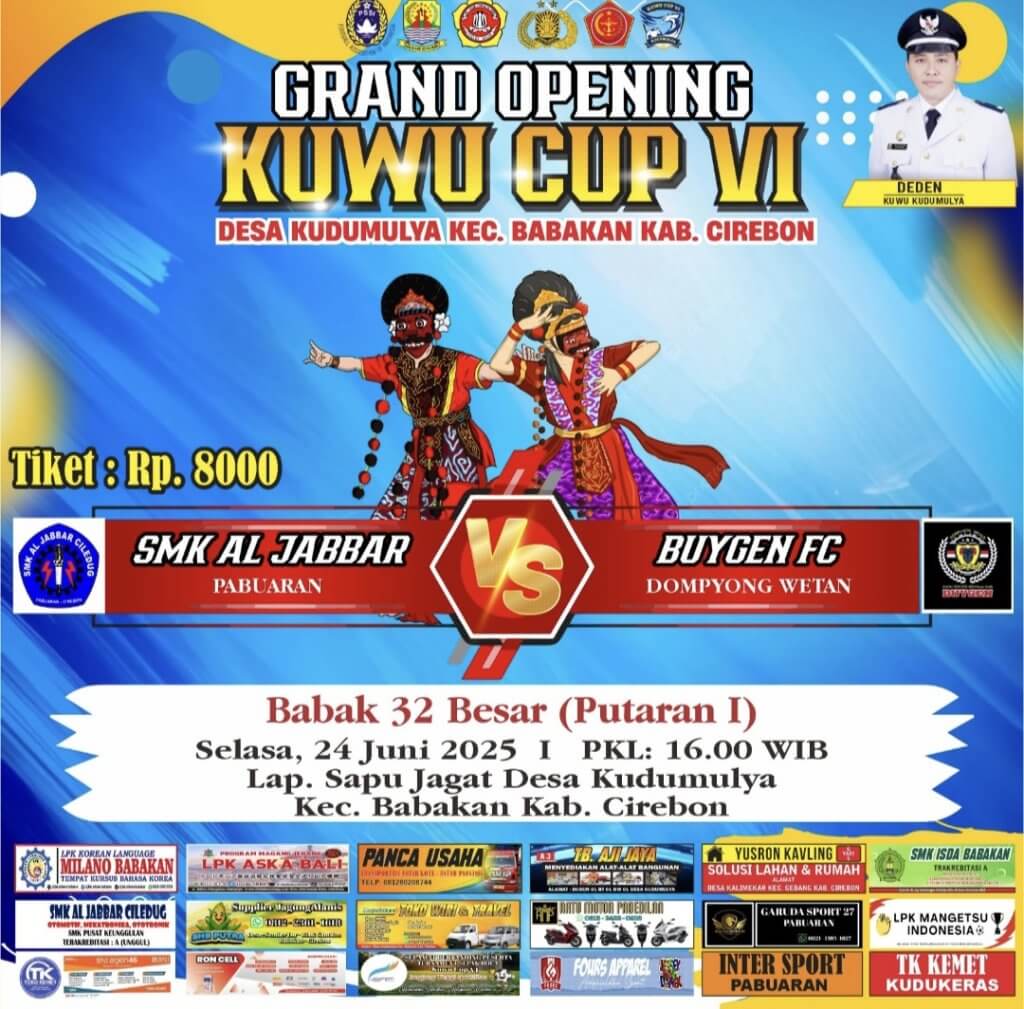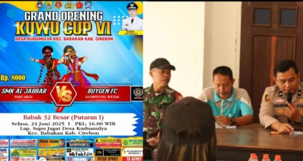CIREBON – Turnamen sepak bola tahunan bertajuk Kuwu Cup VI resmi dibuka hari ini, Selasa, 24 Juni 2025, di Desa Kudumulya, Kecamatan Babakan, Kabupaten Cirebon. Kegiatan ini digelar dalam rangka menyambut HUT ke-80 Republik Indonesia sekaligus HUT ke-40 Desa Kudumulya yang jatuh pada 23 Agustus mendatang.