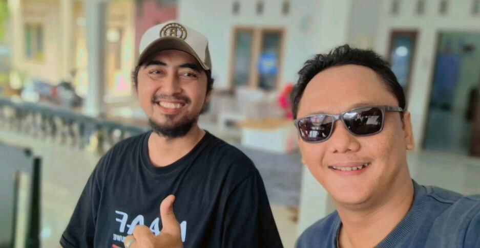 Pemred JP, Hasan Jay berfose bareng panitia Kuwu Cup Kudumulya, Tifathul Panji Negara usai wawancara.